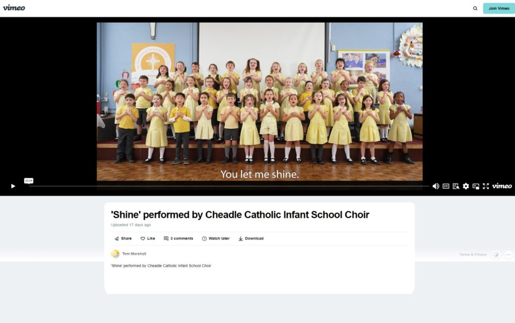Cheadle Catholic Infant School shares their entry into National Song competition: ‘SHINE’ based on school Mission Statement