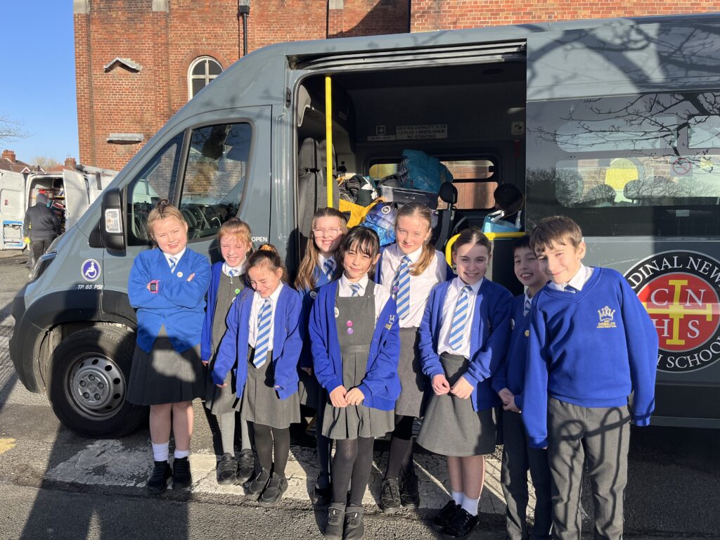 The bags were supposed to be delivered on Friday January 24th to ‘Room at the Inn, to support the users of their service having been collected in the Newman school minibus by volunteer students from the different schools, who weaved their way between all of the schools across the town despite the gale force winds! It turned out, however, that the volume of donations from the primary schools was so large, that the Cardinal Newman minibus was filled several times over. In the end, it took an extra two days of collections to bring all of the donations together and hand them over to their destination on Wednesday 29th January.